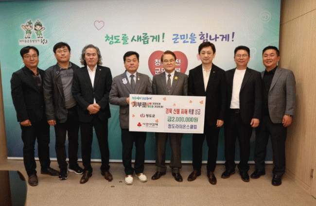 [NWS¹æ¼Û=Çѽ¸ñ ±âÀÚ] ûµµ¶óÀ̿½ºÅ¬·´ ȸ¿øµéÀº Áö³­ 7ÀÏ °æºÏÁö¿ª »êºÒÇÇÇØÀÇ ½Å¼ÓÇÑ º¹±¸¿Í º¹±Í¸¦ ¹Ù¶ó´Â ¸¶À½À» ´ãÀº ¼º±Ý 200¸¸¿øÀ» ûµµ±º¿¡ Àü´ÞÇß´Ù. ûµµ¶óÀ̿½ºÅ¬·´Àº ¸Å³â ÁÖ°Åȯ°æ°³¼± ºÀ»ç¿Í °¢Á¾ ¼º±Ý, Çö¹° ±âŹ µî¡¦