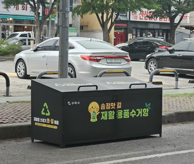 [NWS¹æ¼Û=Çѽ¸ñ ±âÀÚ]±¸¹Ì½Ã°¡ Áö³­ 2ÀÏ Áö¿ª ´ëÇ¥ ¸Ô°Å¸® Ưȭ°Å¸®ÀÎ ¼ÛÁ¤¸À±æÀÇ È¯°æ °³¼±À» À§ÇØ ÀçȰ¿ëǰ ¼ö°ÅÇÔÀ» ½Ã¹ü ¼³Ä¡Çß´Ù. ¼³Ä¡µÈ ¼ö°ÅÇÔÀº ÃÑ 8°³·Î, Á¾ÀÌ, ½ºÆ¼·ÎÆû, ºñ´Ò, ÇÃ¶ó½ºÆ½ µî ÀçȰ¿ë °¡´ÉÇÑ Ç°¸ñÀ» ºÐ¸® ¹èÃâÇÒ¡¦