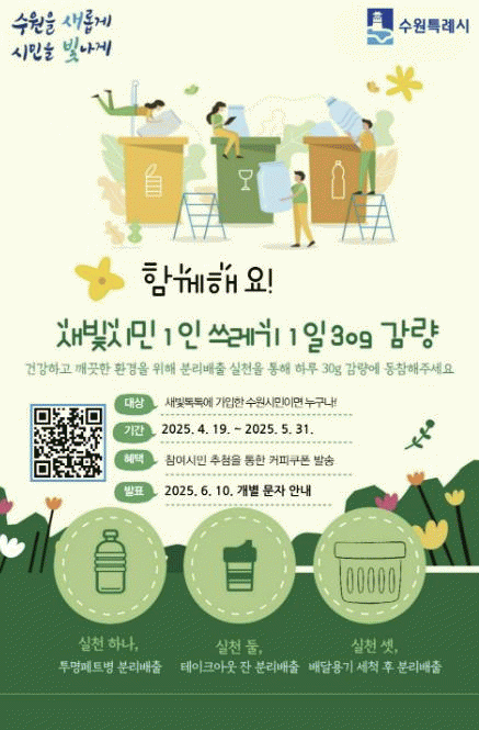 [»çȸ] ¼ö¿ø½Ã, '»õºû½Ã¹Î 1ÀÏ ¾²·¹±â 30g °¨·® ½Çõ ¼­¾à Ä·ÆäÀÎ' Àü°³ |2025. 05.08