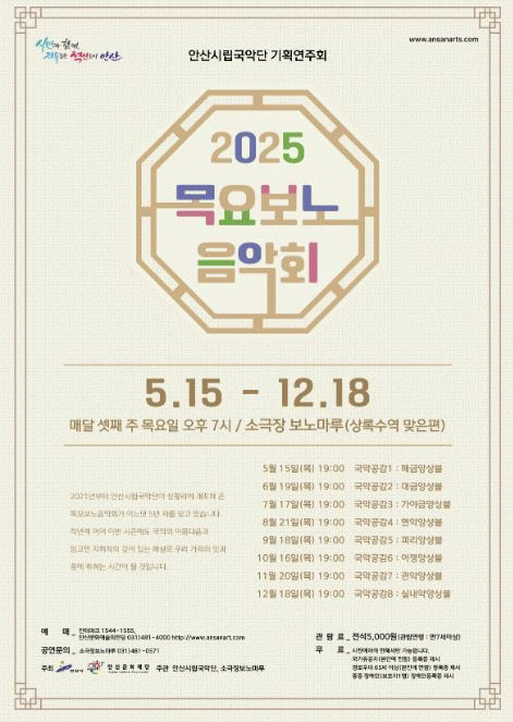 [»çȸ] ¾È»ê½Ã¸³±¹¾Ç´Ü, 12¿ù±îÁö »ó¼³±âȹ°ø¿¬ '¸ñ¿äº¸³ë À½¾Çȸ' °³ÃÖ |2025. 05.08