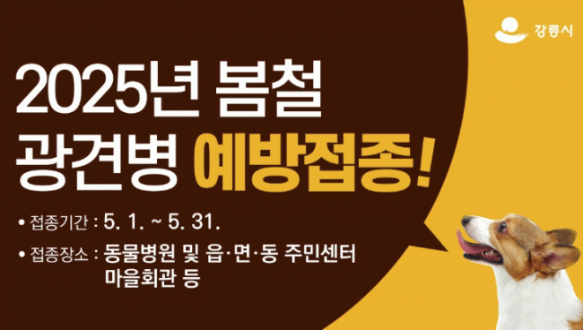 [NWS¹æ¼Û=Çѽ¸ñ ±âÀÚ]°­¸ª½Ã´Â Àμö°øÅëÀü¿°º´À¸·Î ¾Ë·ÁÁø ±¤°ßº´À¸·ÎºÎÅÍ ½Ã¹Î°ú ¹Ý·Áµ¿¹°À» ¾ÈÀüÇÏ°Ô º¸È£Çϱâ À§ÇØ ¿À´Â 5¿ù 31ÀϱîÁö º½Ã¶ ±¤°ßº´ ¿¹¹æÁ¢Á¾À» ½Ç½ÃÇÑ´Ù. Á¢Á¾´ë»óÀº µ¿¹°µî·ÏÀ» ÇÑ 3°³¿ù·É ÀÌ»óÀÇ ¹Ý·Áµ¿¹°(°³, °í¡¦