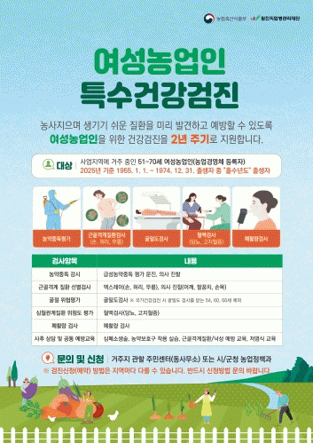 [°Ç°­] ÃæºÏµµ ¿©¼º³ó¾÷ÀÎ, Ư¼ö°Ç°­°ËÁøÀ¸·Î ³óÀÛ¾÷ Áúȯ ¿¹¹æÇϼ¼¿ä! |2025. 05.08