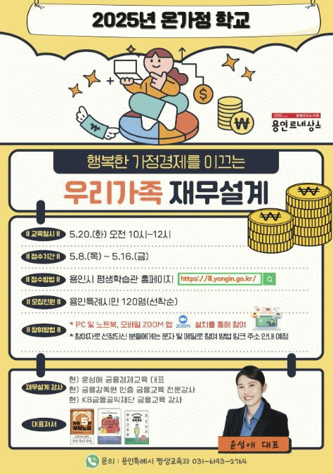 [NWS¹æ¼Û=Çѽ¸ñ ±âÀÚ]¿ëÀÎÆ¯·Ê½Ã´Â ¡®ÇູÇÑ °¡Á¤°æÁ¦·Î À̲ô´Â ¿ì¸®°¡Á· À繫¼³°è¡¯¸¦ ÁÖÁ¦·Î ÇÑ ¡®2025³â ¿Â°¡Á¤ Çб³¡¯ Ư°­ Âü°¡ÀÚ¸¦ ¸ðÁýÇÑ´Ù°í 8ÀÏ ¹àÇû´Ù. ¿ëÀνà Æò»ýÇнÀ°üÀÌ ¿î¿µÇÏ´Â ¡®¿Â°¡Á¤ Çб³¡¯´Â °¡Á¤ °æ¿µÀ̳ª ÀÚ³à ¡¦