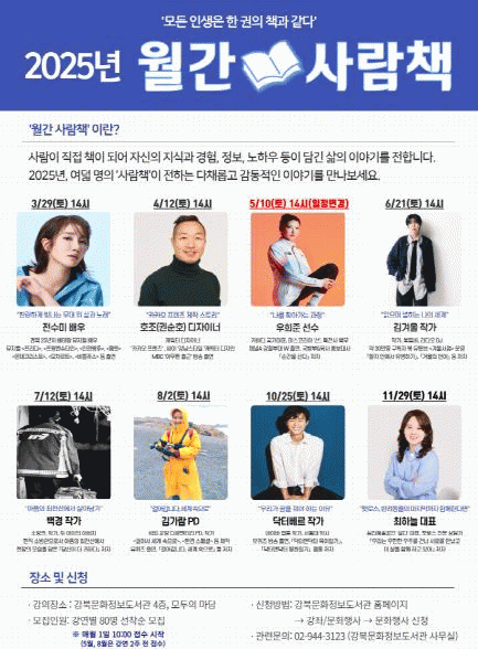 [»çȸ] "Ã¥ÀÌ µÈ »ç¶÷ÀÌ ÀüÇÏ´Â »ì¾ÆÀÖ´Â À̾߱â¿Í ¸¸³ª´Ù" °­ºÏ¹®È­Á¤º¸µµ¼­°ü, '2025 ¿ù°£ »ç¶÷Ã¥' °­¿¬ ¿î¿µ |2025. 05.08
