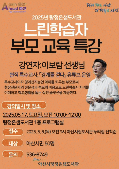 [»çȸ] ¾Æ»ê½Ã ÅÁÁ¤¿Â»ùµµ¼­°ü, '´À¸°ÇнÀÀÚ ºÎ¸ð ±³À° Ư°­' °³ÃÖ |2025. 05.08