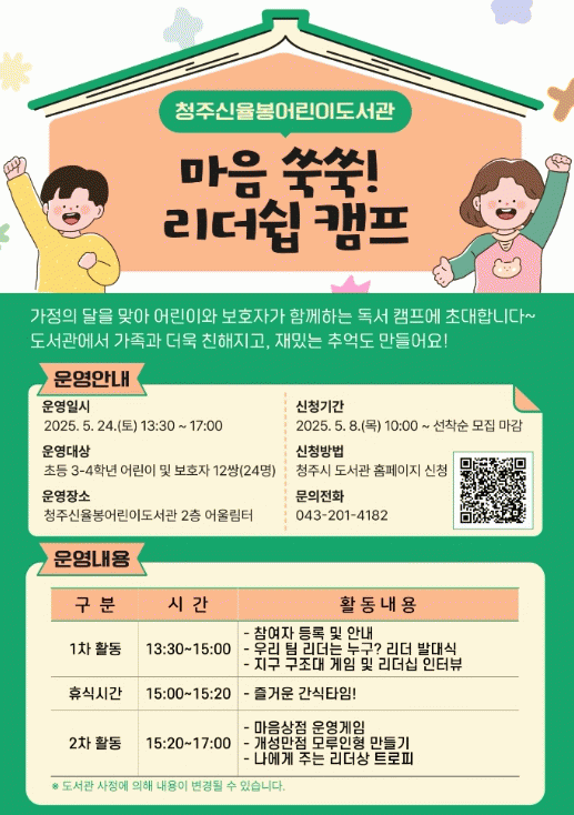 [»çȸ] ûÁÖ½ÅÀ²ºÀ¾î¸°À̵µ¼­°ü, ¡®¸¶À½ ¾¦¾¦ Ä·ÇÁ¡¯ Âü¿©ÀÚ ¸ðÁý |2025. 05.07