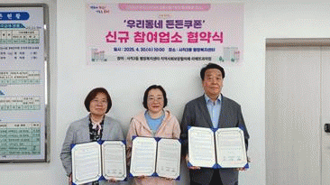 [NWS¹æ¼Û=Çѽ¸ñ ±âÀÚ] ºÎ»ê µ¿·¡±¸ »çÁ÷3µ¿ Áö¿ª»çȸº¸ÀåÇùÀÇü´Â Áö³­´Þ 30ÀÏ ¸®¿¡¶Ç °úÀÚÁ¡°ú¡®¿ì¸®µ¿³× µçµçÄíÆù' »ç¾÷ÃßÁø ¾÷¹«Çù¾àÀ» ü°áÇß´Ù°í ¹àÇû´Ù. ÀÌ »ç¾÷Àº ÃÊ·Ï¿ì»ê ¾î¸°ÀÌÀç´Ü¡®¿ì¸® µ¿·¡(ÔÔÕÑ) õ»ç¸¦ ã½À´Ï´Ù' ÈÄ¡¦
