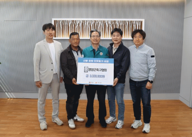 [NWS¹æ¼Û=Çѽ¸ñ ±âÀÚ]¿µ¾ç±º Ã౸Çùȸ´Â Áö³­ 4¿ù 26ÀϺÎÅÍ 27ÀϱîÁö 2Àϰ£ ¿µ¾ç°ø¼³¿îµ¿Àå ¹× Ã౸°æ±âÀå¿¡¼­ ¿­¸° Á¦4ȸ ¿µ¾ç º°ÃµÁö¹è Àü±¹ µ¿È£ÀÎ Ã౸´ëȸ¿¡ ¼³Ä¡ÇÑ ¡®»êºÒÇÇÇØ ¼º±Ý ¸ð±ÝÇÔ¡¯¼º±Ý 333¸¸¿øÀ» ¿µ¾ç±ºÃ»À» ¹æ¹®ÇØ Àü´Þ¡¦