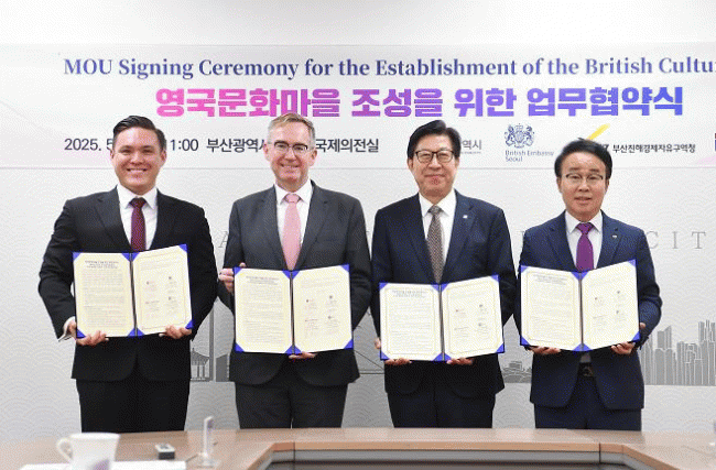 [NWS¹æ¼Û=Çѽ¸ñ ±âÀÚ]ºÎ»ê½Ã´Â ¿À´Ã(7ÀÏ) ¿ÀÀü 11½Ã ½Ãû ±¹Á¦ÀÇÀü½Ç¿¡¼­ ÁÖÇÑ¿µ±¹´ë»ç°ü, ºÎ»êÁøÇذæÁ¦ÀÚÀ¯±¸¿ªÃ», ·Î¾â·¯¼¿½ºÄð ºÎ»êÄ·ÆÛ½º ¼³¸³ÃßÁø´Ü°ú ÇÔ²² '¿µ±¹¹®È­¸¶À» Á¶¼º'À» À§ÇÑ 4ÀÚ °£ ¾÷¹«Çù¾à½ÄÀ» ü°áÇÑ´Ù°í ¹àÇû´Ù. ¡¦