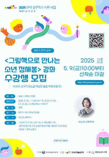 [NWS¹æ¼Û=Çѽ¸ñ ±âÀÚ]±¤¾ç¿ë°­µµ¼­°üÀÌ ¹®È­Ã¼À°°ü±¤ºÎ°¡ ÁÖÃÖÇϰí Çѱ¹¹®È­¿¹¼úÀ§¿øÈ¸°¡ ÁÖ°üÇÏ´Â '2025 ¹®ÇÐ »óÁÖÀÛ°¡ Áö¿ø»ç¾÷'ÀÇ ÀÏȯÀ¸·Î 5¿ùºÎÅÍ 7¿ù±îÁö ¾î¸°À̸¦ À§ÇÑ ¹®ÇÐ ÇÁ·Î±×·¥ '±×¸²Ã¥À¸·Î ¸¸³ª´Â ¼Ò³â Á¤Ã¤ºÀ'À» ¿î¿µÇÑ´Ù¡¦