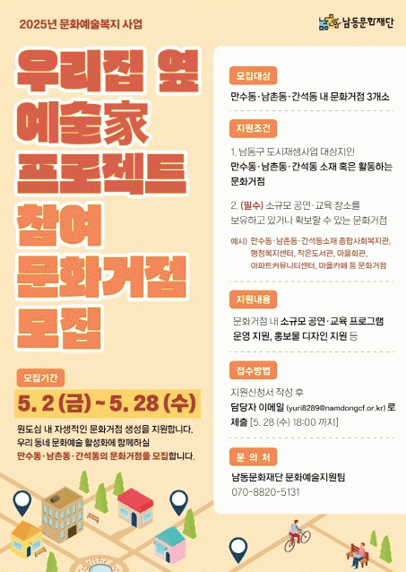 [»çȸ] ³²µ¿¹®È­Àç´Ü, ¡®¿ì¸®Áý ¿· ¿¹¼úÊ« ÇÁ·ÎÁ§Æ®¡¯ Âü¿© ¹®È­°ÅÁ¡ ¸ðÁý |2025. 05.07