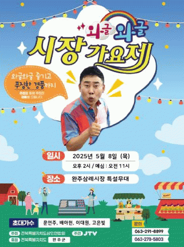 [NWS¹æ¼Û=Çѽ¸ñ ±âÀÚ]ÀüÅë½ÃÀå°ú Áö¿ªÁÖ¹ÎÀÌ ÇÔ²² ¾î¿ì·¯Áö´Â Èï°Ü¿î ¹«´ë ¡®ÀüÅë½ÃÀå ¿Í±Û¿Í±Û ½ÃÀå°¡¿äÁ¦¡¯ Çà»ç°¡ ¿À´Â 8ÀÏ ¿ÀÈÄ 2½Ã ¿ÏÁÖ±º »ï·Ê½ÃÀå¿¡¼­ ¿­¸°´Ù. ±º¹Î ´©±¸³ª Âü¿©ÇÒ ¼ö ÀÖ´Â À̹ø °¡¿äÁ¦´Â Äڹ̵ð¾ð Ȳ±â¼øÀÇ »çȸ¡¦