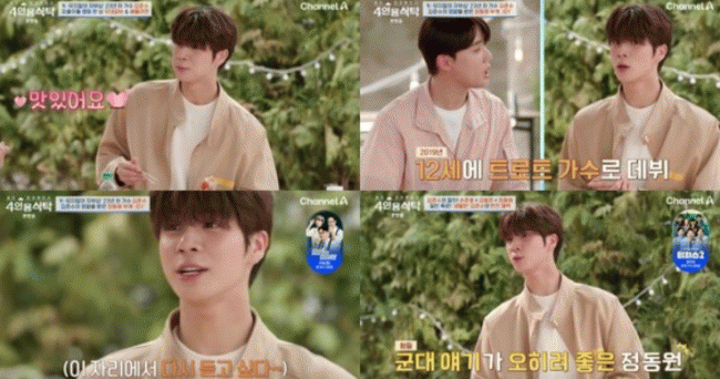 [NWS¹æ¼Û=±èÂ÷¿µ ±âÀÚ]°¡¼ö Á¤µ¿¿øÀÌ ±èÁؼö¿ÍÀÇ µ·µ¶ÇÑ ¼±ÈÄ¹è °£ ¿ìÁ¤À» ¼±º¸¿´´Ù. Á¤µ¿¿øÀº Áö³­ 5ÀÏ ¹æ¼ÛµÈ ä³ÎA ¡®ÀýÄ£ ÅäÅ¥¸àÅ͸® 4Àοë½ÄŹ¡¯(ÀÌÇÏ ¡®4Àοë½ÄŹ¡¯)¿¡ Ã⿬Çß´Ù. À̹ø ¹æ¼ÛÀº °¡¼ö °â ¹ÂÁöÄà ¹è¿ì ±èÁؼö ÆíÀ¸·Î¡¦
