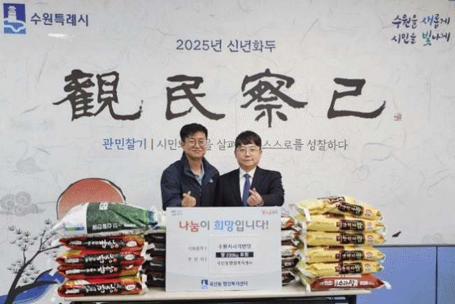 [NWS¹æ¼Û=Çѽ¸ñ ±âÀÚ]¼ö¿ø½Ã ±Ç¼±±¸ Æòµ¿ ´ÜüÀåÇùÀÇȸ¿Í Æòµ¿ »õ¸¶À»ºÎ³àȸ´Â Áö³­ 2ÀÏ, Áö¿ª»çȸÀÇ ¼Ò¿ÜµÈ ¾Æµ¿µé¿¡°Ô µû¶æÇÑ ¸¶À½À» ÀüÇϰíÀÚ °ü³» Áö¿ª¾Æµ¿¼¾ÅÍ 8°³¼Ò¿¡ ½Ò 10kg 15Æ÷´ë¸¦ ±âºÎÇÏ¿© µû¶æÇÑ ³ª´®À» ½ÇõÇß´Ù. À̹ø ½Ò¡¦