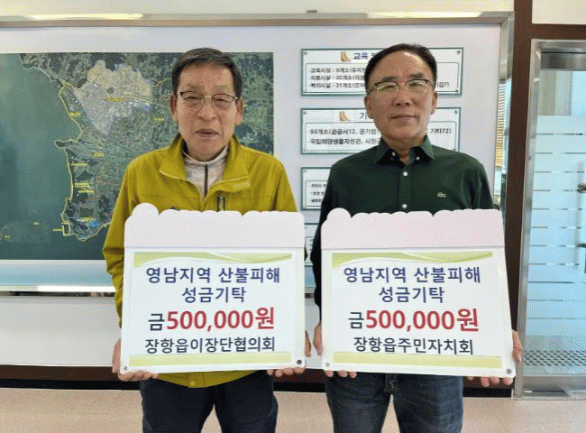 [NWS¹æ¼Û=Çѽ¸ñ ±âÀÚ]¼­Ãµ±º ÀåÇ×À¾ÀÌÀå´ÜÇùÀÇȸ¿Í ÀåÇ×À¾ÁÖ¹ÎÀÚġȸ´Â Áö³­ 30ÀÏ, »êºÒ ÇÇÇØ·Î ¾î·Á¿òÀ» °Þ°í ÀÖ´Â ¿µ³²Áö¿ª ÀÌ¿ôµéÀ» µ½±â À§ÇØ °¢°¢ 50¸¸¿øÀÇ ¼º±ÝÀ» »çȸº¹Áö°øµ¿¸ð±Ýȸ¿¡ ±âŹÇß´Ù. À̹ø ¼º±Ý Àü´ÞÀº »êºÒ·Î ÀÎÇØ ¡¦