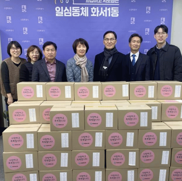 [NWS¹æ¼Û=Çѽ¸ñ ±âÀÚ]Áö³­ 9ÀÏ ¼ö¿ø½Ã ÆÈ´Þ±¸ È­¼­1µ¿Àº, ¼ö¿ø¿µ±¤±³È¸¿¡¼­ ¿¬¸»À» ¸Â¾Æ Áö¿ª»çȸ Ãë¾à°èÃþÀ» À§ÇÑ »ýÇÊǰ²Ù·¯¹Ì 100¹Ú½º¸¦ È­¼­1µ¿¿¡ ÈÄ¿øÇß´Ù°í ¹àÇû´Ù. À̹ø ÈÄ¿øÀº °æÁ¦ÀûÀ¸·Î ¾î·Á¿òÀ» °Þ°í ÀÖ´Â ÀÌ¿ôµéÀÌ µûµíÇÏ°í¡¦