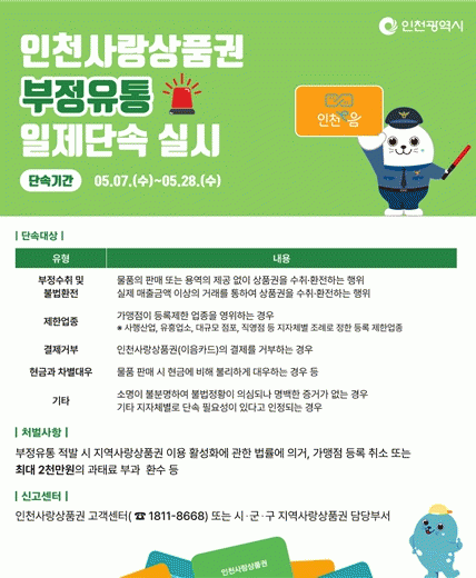 [°æÁ¦] ÀÎõ½Ã, ÀÎõ»ç¶û»óǰ±Ç ºÎÁ¤ À¯Åë ÀÏÁ¦ ´Ü¼Ó ³ª¼±´Ù! |2025. 05.07