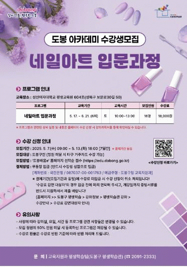 [NWS¹æ¼Û=Çѽ¸ñ ±âÀÚ]¼­¿ï µµºÀ±¸°¡ ³×ÀÏ¾ÆÆ® ÀÔ¹® °úÁ¤ ¼ö°­»ýÀ» ¸ðÁýÇÑ´Ù. À̹ø °úÁ¤¿¡¼­´Â ³×ÀÏ¾ÆÆ® °ü·Ã ±âº» ÀÌ·Ð ±³À°°ú ½Ç½ÀÀÌ Ã¼°èÀûÀ¸·Î ÁøÇàµÉ ¿¹Á¤ÀÌ´Ù. Ãʺ¸ÀÚ¸¦ ´ë»óÀ¸·Î Çϱ⿡ ³×ÀÏ¾ÆÆ®¿¡ °ü½É ÀÖ´Â ´©±¸³ª µéÀ» ¼ö ÀÖ´Ù¡¦