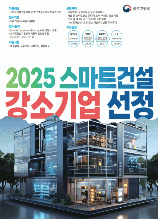 [°æÁ¦] ±¹Åä±³ÅëºÎ, ½º¸¶Æ®°Ç¼³ÀÇ ¹Ì·¡¸¦ À̲ø¾î³ª°¥ °­¼Ò±â¾÷ ¸ðÁý |2025. 05.06