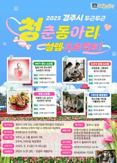 [»çȸ] °æÁÖ½Ã, ¹ÌÈ¥³²³à ¸¸³² Áö¿ø¡¦¡®Ã»Ãᵿ¾Æ¸® µÎ±ÙµÎ±Ù ¼³·½ ÇÁ·ÎÁ§Æ®¡¯ Âü°¡ÀÚ ¸ðÁý |2025. 05.06