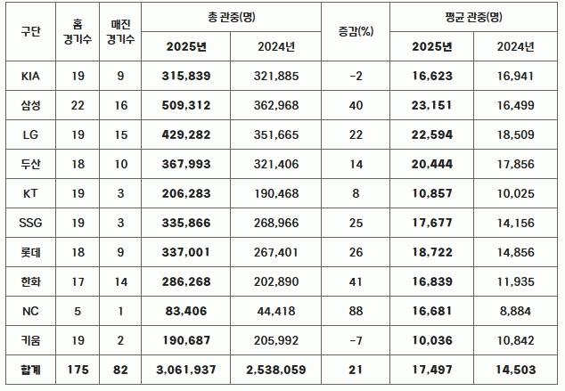 [½ºÆ÷Ã÷] 2025 KBO ¸®±× ¿ª´ë ÃÖ¼Ò °æ±â 300¸¸ °üÁß ´Þ¼º |2025. 05.06