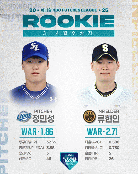 [NWS¹æ¼Û=¼­Çö¼® ±âÀÚ]2025 ¸ÞµðÈú KBO ǻ󽺸®±× ¿ù°£ ¸ÞµðÈú ǻó½º ·çŰ»óÀÇ ½ÃÁð ù ¼ö»óÀÚ·Î, Åõ¼ö ºÎ¹®¿¡´Â »ï¼º Á¤¹Î¼º ÀÌ WAR 1.86À», ŸÀÚ ºÎ¹®Àº »ó¹« ·ùÇöÀÎÀÌ WAR 2.71À» ±â·ÏÇÏ¸ç °¢°¢ ¼±Á¤µÆ´Ù. »ï¼º Á¤¹Î¼ºÀº ±º»ê»óÀÏ¡¦