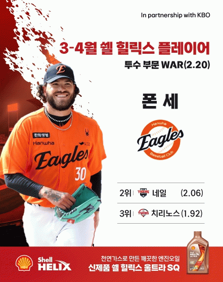 [NWS¹æ¼Û=¼­Çö¼® ±âÀÚ]KBO¿Í Çѱ¹½©¼®À¯ÁÖ½Äȸ»ç(¡®Çѱ¹½©¡¯)°¡ ÇÔ²² ½Ã»óÇÏ´Â ¡®½©Èú¸¯½ºÇ÷¹À̾ÀÇ 2025 ½ÅÇÑ SOL¹ðÅ© KBO ¸®±× ù ¼ö»óÀÚ·Î ÇÑÈ­ÀÇ Æù¼¼, LGÀÇ ¹Úµ¿¿øÀÌ °¢°¢ ¼±Á¤µÆ´Ù. ¡®½©Èú¸¯½ºÇ÷¹À̾´Â WAR(´ëü ¼±¼ö ´ëºñ¡¦