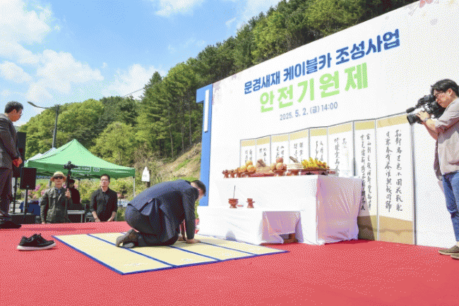 [NWS¹æ¼Û=Çѽ¸ñ ±âÀÚ]¹®°æ½Ã´Â 5¿ù 2ÀÏ 14½Ã, ÄÉÀ̺íÄ« ÇϺΠ½Â°­Àå Àα٠Á¦4ÁÖÂ÷Àå¿¡¼­ ¡®¹®°æ»õÀç ÄÉÀ̺íÄ« Á¶¼º»ç¾÷¡¯ÀÇ ¾ÈÀü°ú ¼º°øÀ» ±â¿øÇÏ´Â ¾ÈÀü±â¿øÁ¦¸¦ °³ÃÖÇϸç ÈûÂù Ãâ¹ßÀ» ¾Ë·È´Ù. À̳¯ Çà»ç¿¡´Â ½ÃÀå°ú ½Ã¡¤µµÀÇ¿ø µî ÁÖ¡¦