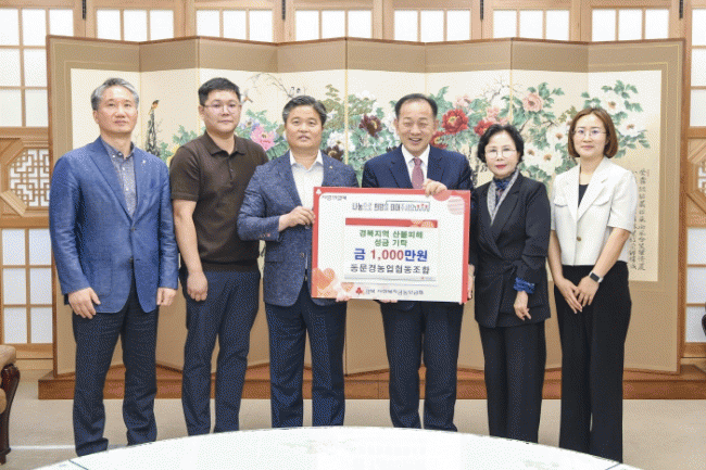 [NWS¹æ¼Û=Çѽ¸ñ ±âÀÚ] Áö³­ 2ÀÏ ¹®°æ½Ãû¿¡¼­´Â µ¿¹®°æ³ó¾÷Çùµ¿Á¶ÇÕ(Á¶ÇÕÀå ÀÌÈ¿Áø), µ¿¹®°æ³óÇù ¿©¼º´Üü(´ÜÀå ÇöÁ¡¿©)°¡ ÃÖ±Ù ¹ß»ýÇÑ °æºÏÁö¿ª ´ë±Ô¸ð »êºÒ·Î ÇÇÇØ¸¦ ÀÔÀº ÁֹεéÀ» À§ÇÑ ¼º±Ý ±âʽÄÀ» °¡Á³´Ù. À̹ø Àü´Þ½Ä¿¡¼­ µ¿¹®¡¦