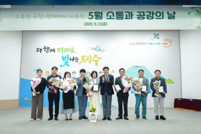 [NWS¹æ¼Û=Çѽ¸ñ ±âÀÚ]¿À¿µÈÆ Á¦ÁÖÆ¯º°ÀÚÄ¡µµÁö»ç´Â 2ÀÏ µµÃ» ޶óȦ¿¡¼­ ¿­¸° ¡®5¿ù ¼ÒÅë°ú °ø°¨ÀÇ ³¯¡¯ Çà»ç¿¡¼­ ¡°ÇູÇÑ °¡Á¤Àº ¿ì¸® »îÀÇ µçµçÇÑ ¹öÆÀ¸ñÀÌÀÚ, Á¦ÁÖÀÇ Áö¼Ó°¡´ÉÇÑ ¹ßÀüÀ» À̲ô´Â ¿øµ¿·Â¡±À̶ó¸ç 5¿ù °¡Á¤ÀÇ ´ÞÀÇ Àǹ̡¦