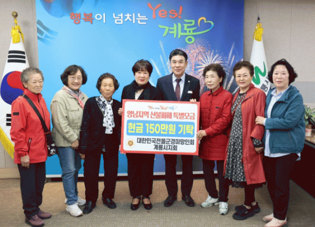 [NWS¹æ¼Û=Çѽ¸ñ ±âÀÚ]°è·æ½Ã´Â ´ëÇѹα¹ Àü¸ô±º°æ ¹Ì¸ÁÀÎȸ °è·æ½ÃÁöȸ(ȸÀå ±¸¼øÁ¶)¿¡¼­ »êºÒ ÇÇÇØ º¹±¸¿¡ ½á´Þ¶ó¸ç Çö±Ý 150¸¸ ¿øÀ» ±âÅ¹ÇØ ¿Ô´Ù°í ¹àÇû´Ù. À̹ø ¼º±ÝÀº ¼Ò¼Ó ȸ¿ø 16¸íÀÌ ÀÚ¹ßÀûÀ¸·Î Âü¿©ÇØ ¾î·Á¿î ½Ã±âÀϼö·Ï »çȸ¡¦