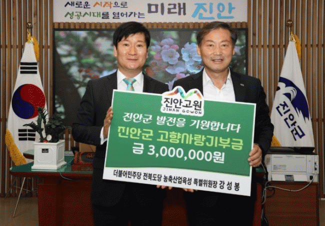 [»çȸ] °­¼ººÀ îñ ÀüºÏµµÀÇ¿ø, Áø¾È±º °íÇâ»ç¶û±âºÎ±Ý 3¹é¸¸¿ø ±âŹ |2025. 05.02