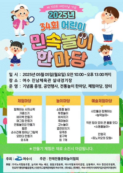 [»çȸ] ¿©¼ö½Ã, Á¦103ȸ ¾î¸°À̳¯ ±â³ä ¹Î¼Ó³îÀÌ ÇѸ¶´ç 5ÀÏ °³ÃÖ |2025. 05.02