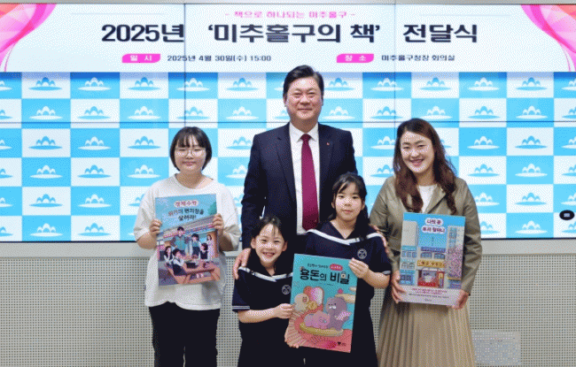 [NWS¹æ¼Û=Çѽ¸ñ ±âÀÚ]ÀÎõ ¹ÌÃßȦ±¸´Â Áö³­ 30ÀÏ ±¸Ã»Àå½Ç¿¡¼­ ¡®2025 ¹ÌÃßȦ±¸ÀÇ Ã¥¡¯ Àü´Þ½ÄÀ» ¿­°í, ÇÑ µµ½Ã ÇÑ Ã¥ µ¶¼­ ¸±·¹ÀÌ Ã¹ ÁÖÀÚ¿¡°Ô ¼±Á¤ µµ¼­¸¦ Àü´ÞÇß´Ù. ¡®¹ÌÃßȦ±¸ÀÇ Ã¥¡¯Àº Ã¥À» ÅëÇØ Çϳª µÇ´Â Áö¿ª»çȸ¸¦ ¸¸µé±â À§ÇÑ¡¦