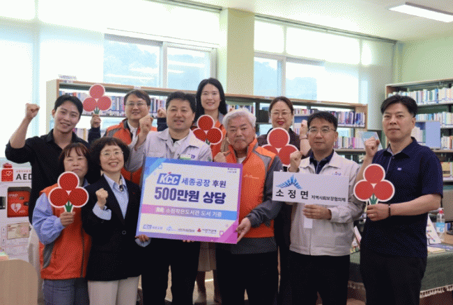 [NWS¹æ¼Û=Çѽ¸ñ ±âÀÚ]KCC¼¼Á¾°øÀåÀÌ 2ÀÏ ¼ÒÁ¤ÀÛÀºµµ¼­°ü¿¡¼­ ¼ÒÁ¤¸é Áö¿ª»çȸº¸ÀåÇùÀÇü¿¡ µµ¼­±¸ÀÔºñ 500¸¸ ¿øÀ» ÁöÁ¤±âŹÇß´Ù. À̹ø ±âºÎ±ÝÀº »çȸº¹Áö°øµ¿¸ð±Ýȸ¸¦ ÅëÇØ ¼ÒÁ¤¸é Áö¿ª»çȸº¸ÀåÇùÀÇü¿¡ Àü´ÞµÆÀ¸¸ç, ¾î¸£½ÅÀ» À§ÇÑ Å«¡¦
