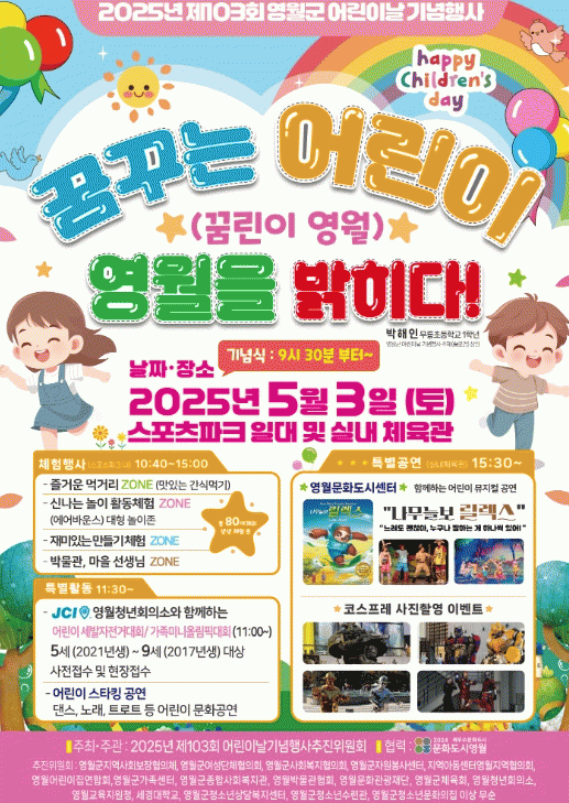 [NWS¹æ¼Û=Çѽ¸ñ ±âÀÚ]¿µ¿ù±ºÀº Á¦103ȸ ¾î¸°À̳¯À» ¸Â¾Æ ¿À´Â 5¿ù 3ÀÏ ¿ÀÀü 10½ÃºÎÅÍ ¿ÀÈÄ 4½Ã±îÁö ¿µ¿ù ½ºÆ÷Ã÷ÆÄÅ© ½Ç³»Ã¼À°°ü¿¡¼­ ´Ùä·Î¿î ±â³äÇà»ç¸¦ °³ÃÖÇÑ´Ù. ¡°²Þ²Ù´Â ¾î¸°ÀÌ, ¿µ¿ùÀ» ¹àÈ÷´Ù¡±¸¦ ÁÖÁ¦·Î ¿­¸®´Â À̹ø Çà»ç´Â ¾î¡¦