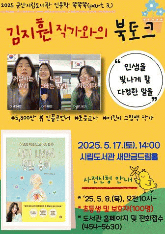 [»çȸ] ±º»ê½Ã¸³µµ¼­°ü, ±èÁöÈÍ ÀÛ°¡¿ÍÀÇ ºÏÅäÅ© ¿î¿µ ¡°ÀλýÀ» ºû³ª°Ô ÇÒ ´ÙÁ¤ÇÑ ¸»µé¡± |2025. 05.02
