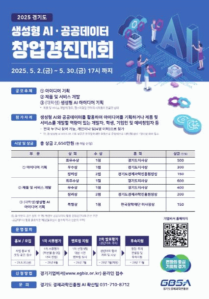 [»çȸ] °æ±âµµ, »ý¼ºÇüAI¡¤°ø°øµ¥ÀÌÅÍ È°¿ë â¾÷°æÁø´ëȸ Âü°¡ÀÚ ¸ðÁý |2025. 05.02