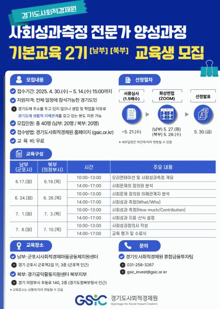 [»çȸ] °æ±âµµ»çȸÀû°æÁ¦¿ø, '»çȸ¼º°úÃøÁ¤ Àü¹®°¡ ¾ç¼º°úÁ¤ ±âº»±³À°' ±³À°»ý ¸ðÁý |2025. 05.02