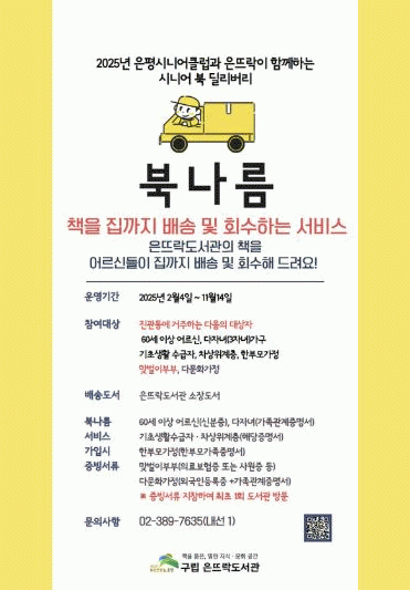 [»çȸ] ÀºÆò±¸ Àº¶ß¶ôµµ¼­°ü, ½Ã´Ï¾î ºÏ ¹è¼Û ¼­ºñ½º 'ºÏ³ª¸§' ¿î¿µ |2025. 05.02