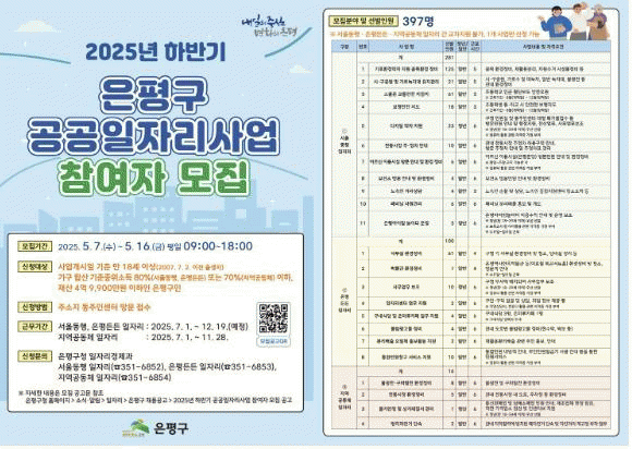 [»çȸ] "ÀÏÇÏ´Â ¿À´Ã, µçµçÇÑ ³»ÀÏ" ÀºÆò±¸, ÇϹݱ⠰ø°øÀÏÀÚ¸®»ç¾÷ Âü¿©ÀÚ ¸ðÁý |2025. 05.02