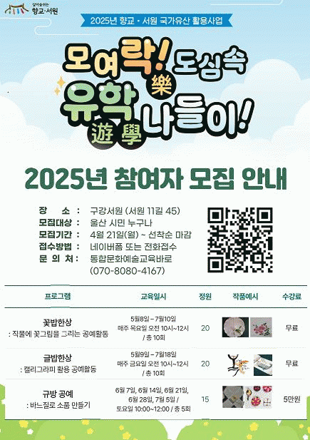 [NWS¹æ¼Û=Çѽ¸ñ ±âÀÚ]¿ï»ê Áß±¸°¡ 5¿ùºÎÅÍ 12¿ù±îÁö ¿ï»êÇâ±³¿Í ±¸°­¼­¿ø¿¡¼­ ¡®2025 Çâ±³¡¤¼­¿ø ¹®È­À¯»ê Ȱ¿ë»ç¾÷-¸ð¿©äÅ! µµ½É ¼Ó À¯ë´ÇÐùʳªµéÀÌ¡¯¸¦ ¿î¿µÇÑ´Ù. ¡®Çâ±³¡¤¼­¿ø ¹®È­À¯»ê Ȱ¿ë»ç¾÷¡¯Àº ±¹°¡À¯»êû ÁÖ°ü °ø¸ð»ç¾÷À¸·Î,¡¦