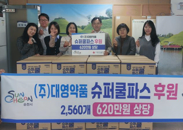 [NWS¹æ¼Û=Çѽ¸ñ ±âÀÚ]¼øÃµ½Ã´Â 29ÀÏ ¢ß´ë¿µ¾àǰ¿¡¼­ ½´ÆÛÄðÆÄ½º 2,560°³(620¸¸¿ø »ó´ç)¸¦ ±âºÎÇß´Ù°í ¹àÇû´Ù. À̳¯ ±âºÎµÈ ½´ÆÛÄðÆÄ½º´Â »çȸº¹Áö½Ã¼³°ú Àú¼Òµæ Ãë¾à°èÃþ¿¡°Ô ¹èºÎÇÒ ¿¹Á¤ÀÌ´Ù. ÆÄ½º¸¦ ÈÄ¿øÇÑ ¢ß´ë¿µ¾àǰ ¹ÚÁ¾¼± ´ëÇ¥ÀÌ¡¦