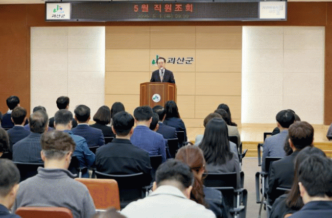 [NWS¹æ¼Û=Çѽ¸ñ ±âÀÚ]¼ÛÀÎÇå ±«»ê±º¼ö°¡ 1ÀÏ ±«»ê±ºÃ» ´ëȸÀǽǿ¡¼­ ¿­¸° 5¿ù ¿ù·ÊÁ¶È¸ ÀÚ¸®¿¡¼­ ÃÖ±Ù °Ý¹«¿¡ ½Ã´Þ¸®°í ÀÖ´Â Á÷¿øµéÀÇ Çå½Å¿¡ ±íÀº °¨»çÀÇ ¶æÀ» ÀüÇß´Ù. À̳¯ ¼Û ±º¼ö´Â ¡°»êºÒ ºñ»ó±Ù¹«, ´ëÅë·É ¼±°Å Áغñ, Áö¿ª ÃàÁ¦ ¡¦