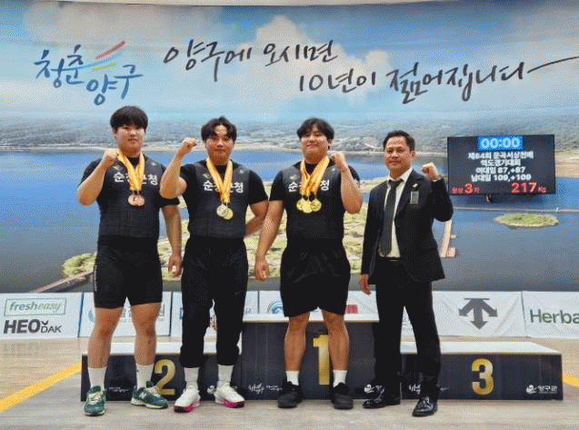 [NWS¹æ¼Û=¼­Çö¼® ±âÀÚ]¼øÃ¢±ºÃ» ¿ªµµÆÀÀÌ Á¦84ȸ ¹®°î¼­»óõ¹è ¿ªµµ°æ±â´ëȸ¿¡¼­ ´«ºÎ½Å Ȱ¾àÀ» ÆîÄ¡¸ç ´Ù½Ã Çѹø Àü±¹ ¹«´ë¿¡¼­ Á¸Àç°¨À» µå·¯³Â´Ù. Àüº´Çö ¼±¼ö´Â Áö³­´Þ 28ÀÏ °­¿øµµ ¾ç±¸ ¿ëÇÏüÀ°°ü¿¡¼­ ¿­¸° 102kg±Þ °æ±â¿¡¼­ Àλó¡¦
