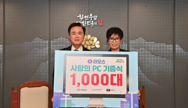 [NWS¹æ¼Û=Çѽ¸ñ ±âÀÚ] Ãæ³²µµ°¡ ¶ó¿À½º Á¤ºÎ¿ÍÀÇ ¿ìÈ£ Çù·ÂÀ» °­È­ÇÏ°í ±³·ù¸¦ Ȱ¼ºÈ­Çϱâ À§ÇØ ÄÄÇ»ÅÍ 1000´ë¸¦ ±âÁõÇß´Ù. µµ´Â 1ÀÏ µµÃ» Á¢°ß½Ç¿¡¼­ ±èÅÂÈì Áö»ç¿Í À¯Çö¼÷ ¶ó¿À½º ¸í¿¹´ë»ç °â ³ª´®¹®È­¿¹¼úÇùȸ ÀÌ»çÀåÀÌ Âü¼®ÇÑ °¡¡¦