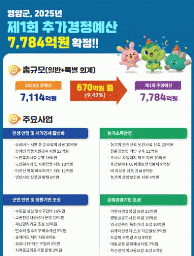 [NWS¹æ¼Û=Çѽ¸ñ ±âÀÚ]¿µ¾Ï±ºÀÌ 4/30ÀÏ ¿µ¾Ï±ºÀÇȸ ÀǰáÀ» °ÅÃÄ 7,784¾ï¿ø ±Ô¸ðÀÇ ¡®2025³â Á¦1ȸ Ãß°¡°æÁ¤¿¹»ê¡¯À» È®Á¤Çß´Ù. ÀÌ´Â ¿ÃÇØ º»¿¹»ê 7,114¾ï¿øÀÇ 9.42%ÀÎ 670¾ï¿øÀÌ Áõ¾×µÈ ¼öÄ¡·Î, ÀϹÝȸ°è´Â 8.66% 561¾ï¿ø Áõ°¡ÇÑ 7,043¡¦
