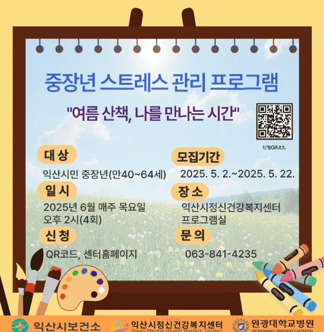 [NWS¹æ¼Û=Çѽ¸ñ ±âÀÚ]ÀÍ»ê½Ã°¡ Á¤½Å°Ç°­º¹Áö¼¾ÅÍ¿Í ÇÔ²² ÁßÀå³âÀÇ Á¤½Å°Ç°­ ÁõÁøÀ» µ½´Â´Ù. ÀÍ»ê½ÃÁ¤½Å°Ç°­º¹Áö¼¾ÅÍ´Â ¿À´Â 6¿ù ¸ÅÁÖ ¸ñ¿äÀÏ¿¡ ½ºÆ®·¹½º °ü¸® ÇÁ·Î±×·¥ '¿©¸§ »êÃ¥, ³ª¸¦ ¸¸³ª´Â ½Ã°£'À» ¿î¿µÇÑ´Ù°í 1ÀÏ ¹àÇû´Ù. À̹ø¡¦