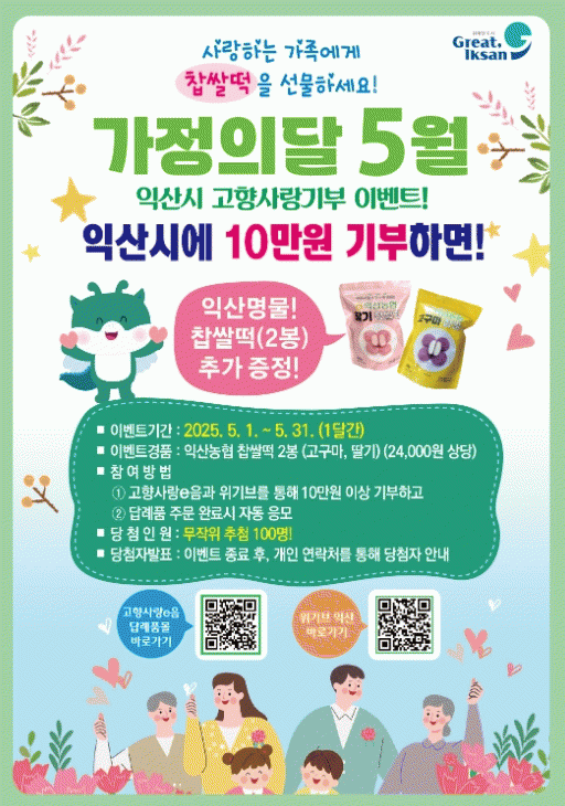 [°æÁ¦] °¡Á¤ÀÇ ´Þ 5¿ù, ÀÍ»ê½Ã °íÇâ»ç¶û±âºÎÁ¦ ´ä·Êǰ À̺¥Æ® |2025. 05.01