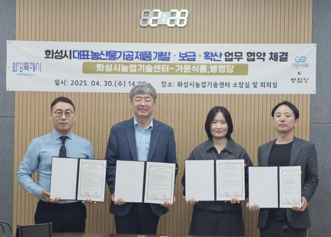 [»çȸ] È­¼ºÆ¯·Ê½Ã, ´ëÇ¥ ³ó»ê¹° °¡°øÁ¦Ç° °³¹ß¡¤º¸±Þ¡¤È®»êÀ» À§ÇÑ °ü³» °¡°ø¾÷ü ¾÷¹«Çù¾à ü°á |2025. 05.01